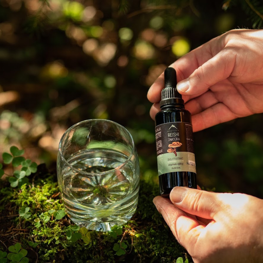 Houby pocházejí z biodynamického zemědělství. Jsou zpracovány metodou dvojitého extraktu (alkohol, voda), takže můžeme extrahovat a zachovat co největší množství biologicky aktivních látek. Celý proces je zpracován ručně v malých dávkách, kde je kladen důraz na čistotu houby a výjimečnou kvalitu každé lahvičky.